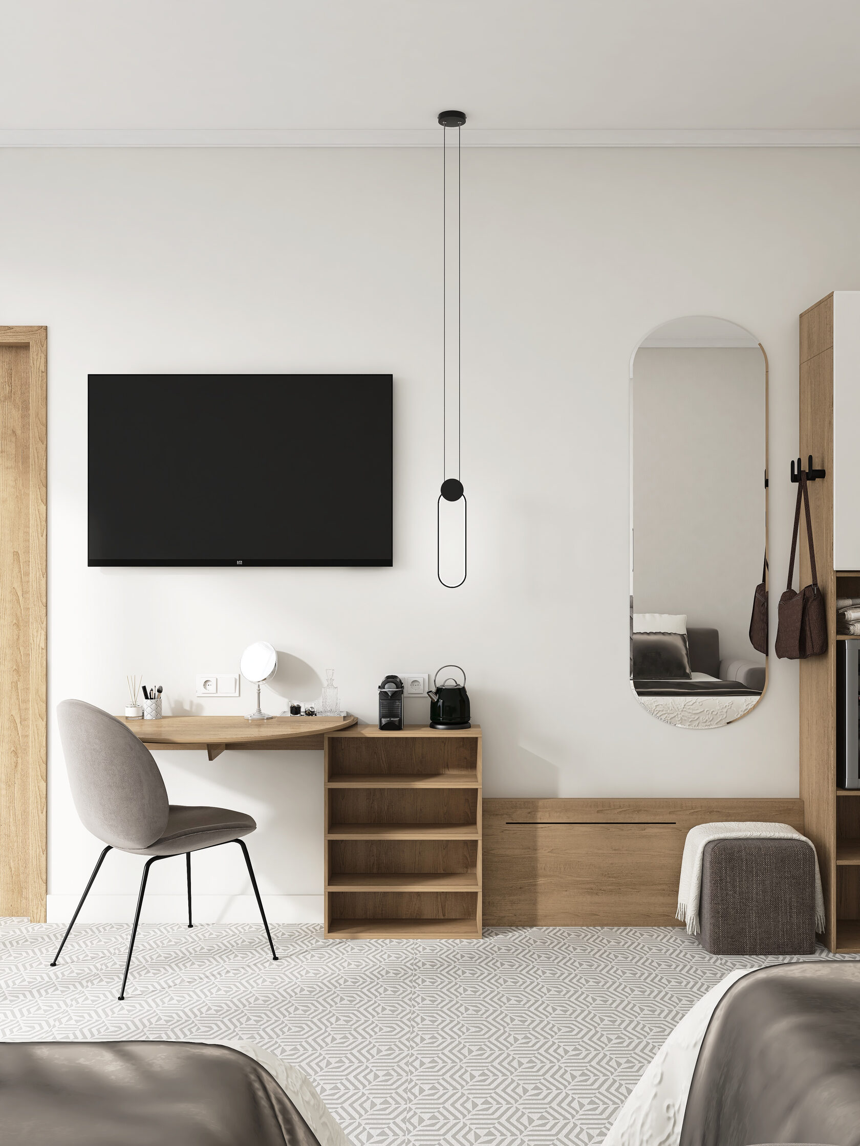 Размещение: 2-х человек на основных местах + 2 дополнительных места. Количество комнат: 1 Площадь номера: 23 м2 В номере: двуспальная или две односпальные кровати, диван-кровать, цифровое ТВ, электрический чайник, холодильник, сплит-система, стационарный телефон, балкон/терраса. В ванной комнате: душ, раковина, унитаз, зеркало, банные принадлежности и гостиничная парфюмерия, оборудованная необходимыми атрибутами для маломобильных людей Водоснабжение: холодная и горячая вода постоянно.